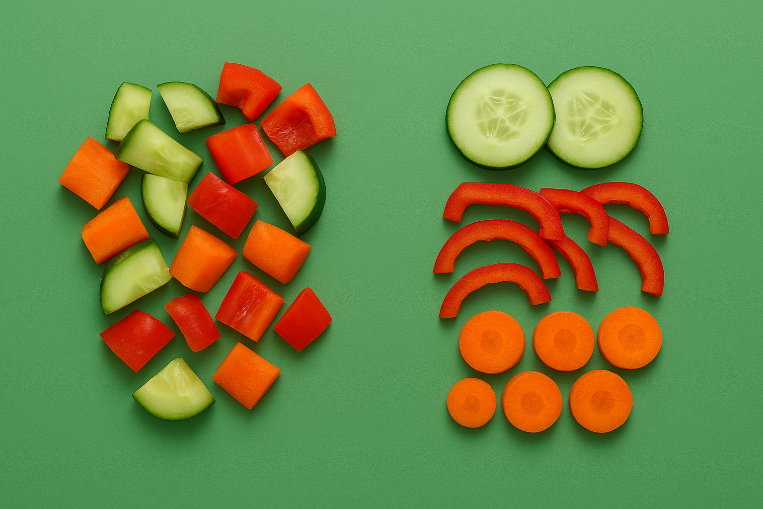 Frutas, verduras, quesos y otros ingredientes. Su versatilidad lo hace ideal para preparar ensaladas, guarniciones y postres.